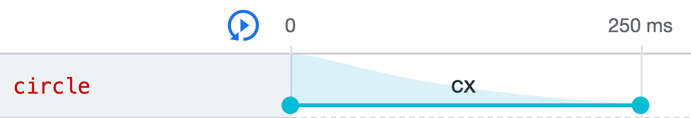 Chrome Geliştirici Araçları'ndaki Animasyon panelinde animasyon geçişlerinin zaman çizelgesini bulabilirsiniz. Toplam animasyonun, öğelerin ve kolaylaştırma zamanlamasının süresi incelenebilir.
